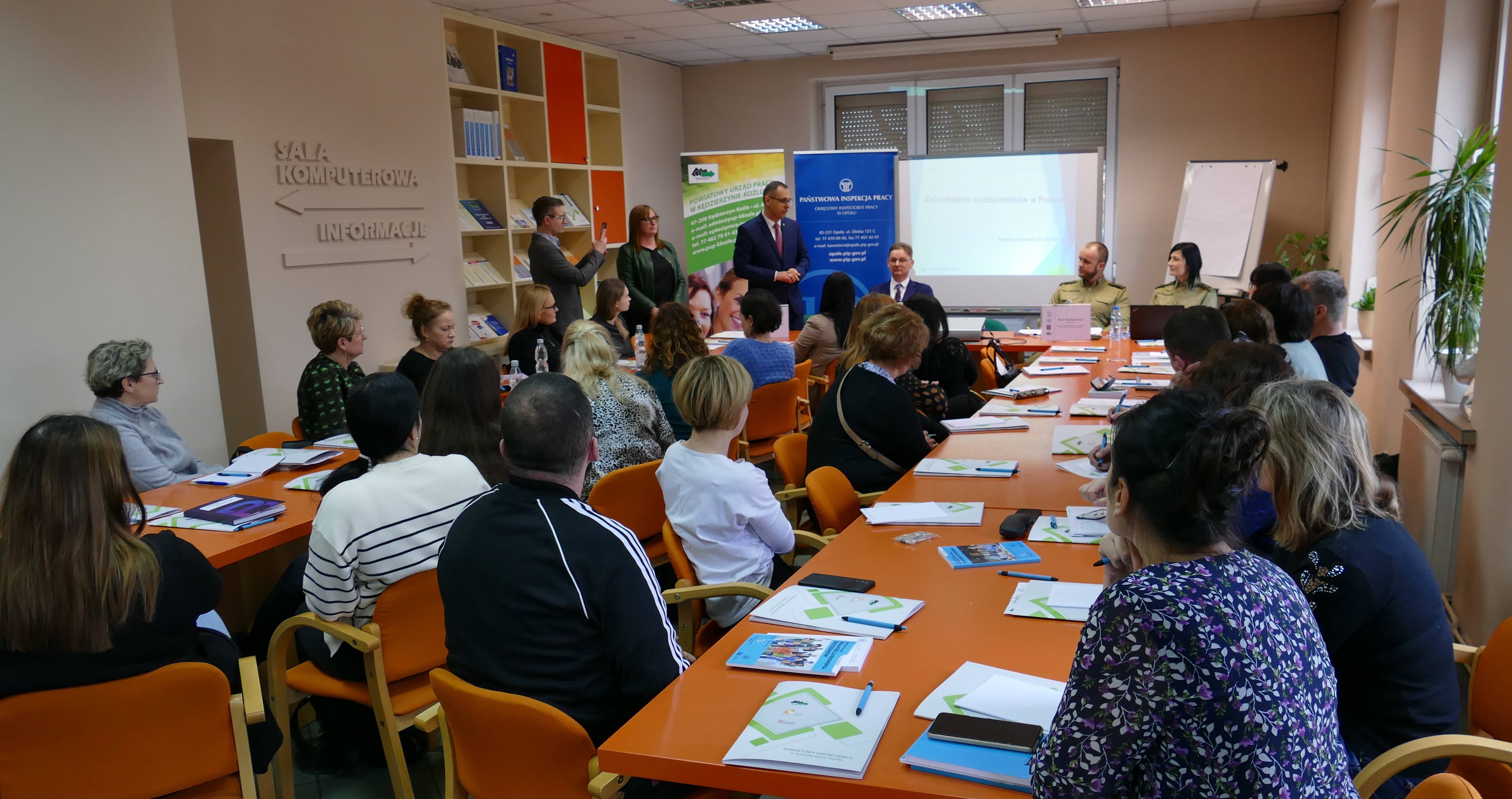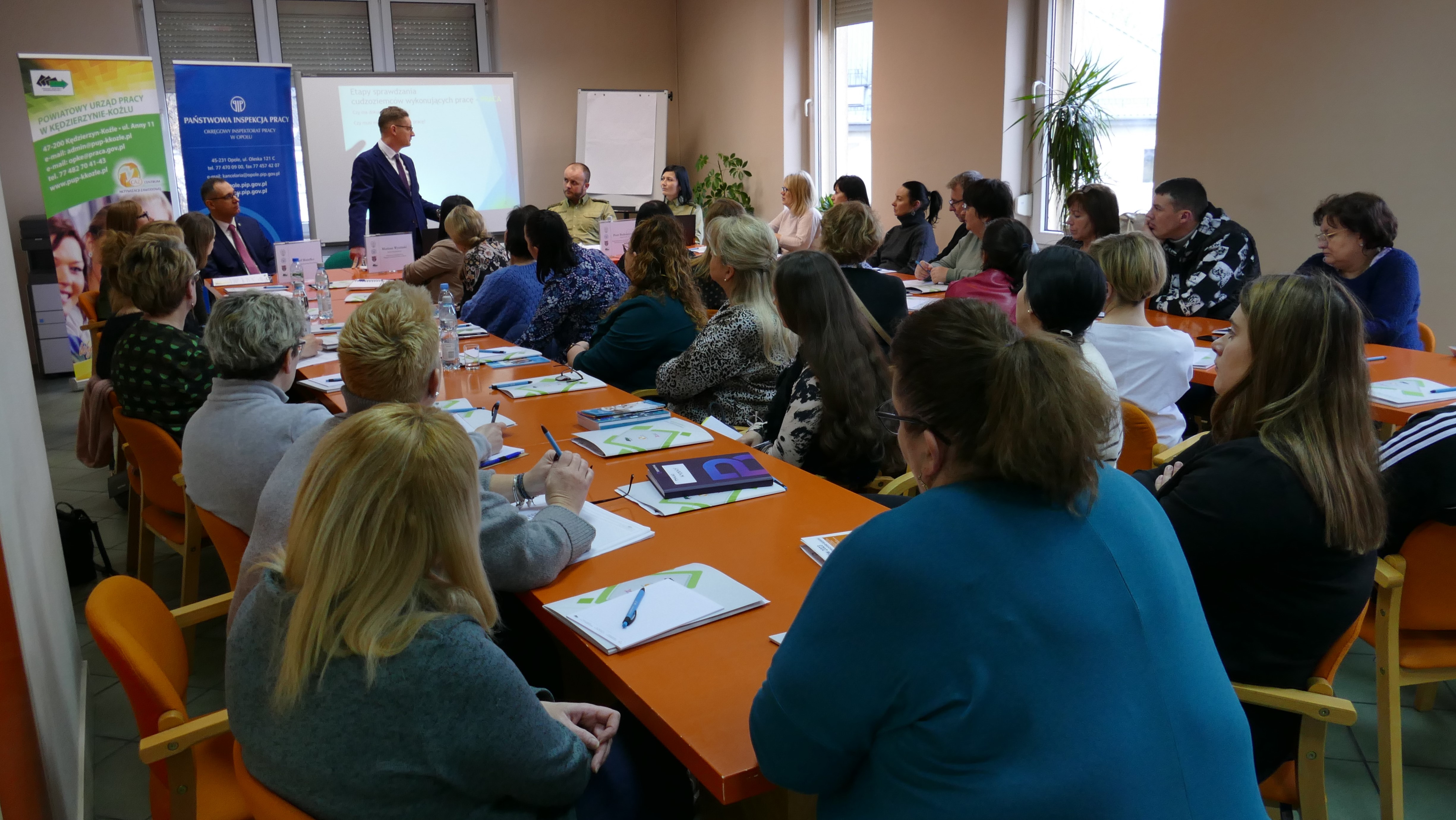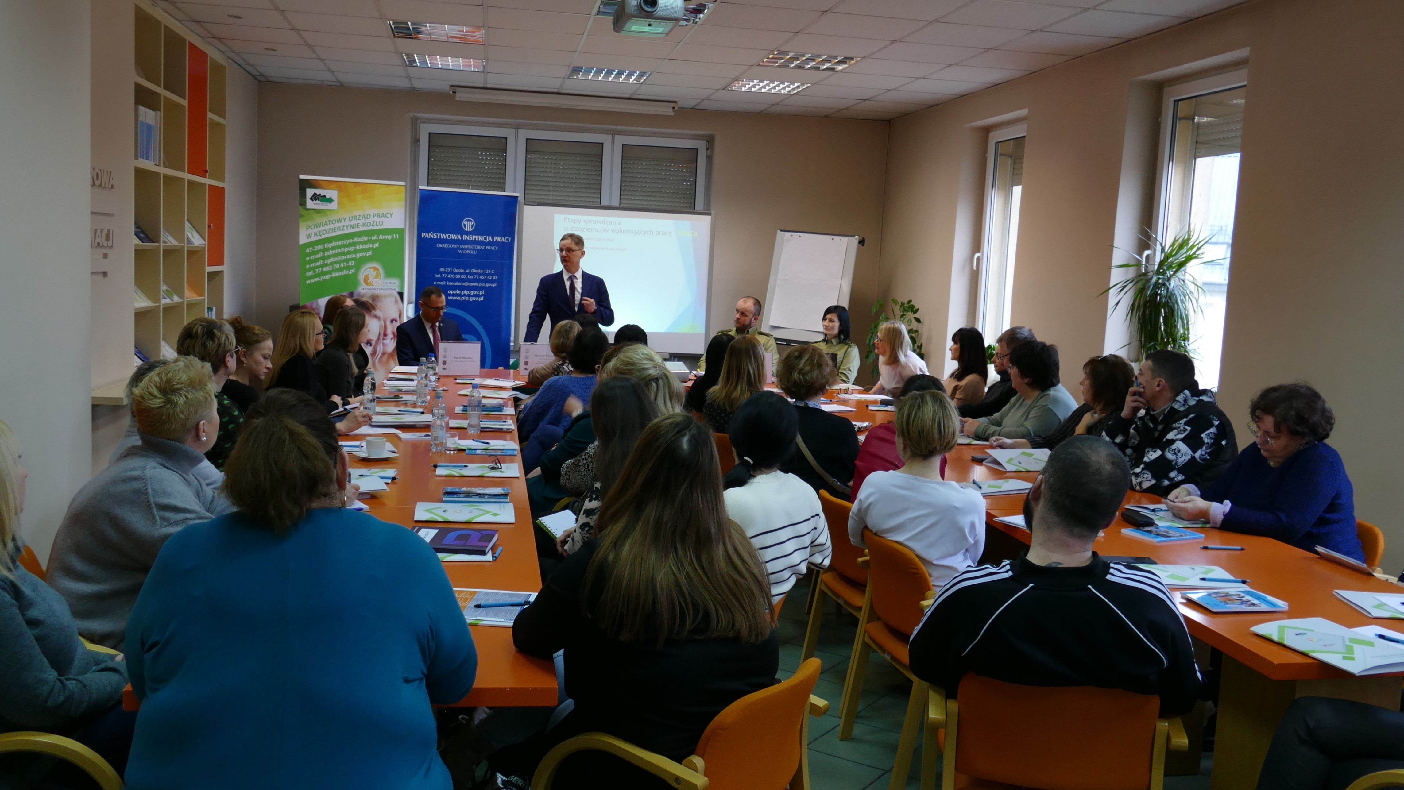Spotkanie przyjęło formułę wykładu połączonego z dyskusją, dzięki czemu na bieżąco omawiane były kwestie nurtujące pracodawców. Udział w spotkaniu wzięło aż 35 pracodawców z terenu Powiatu Kędzierzyńsko-Kozielskiego, zatrudniających cudzoziemców lub pośredniczących w ich zatrudnianiu. Poniżej kilka zdjęć dokumentujących to owocne spotkanie.